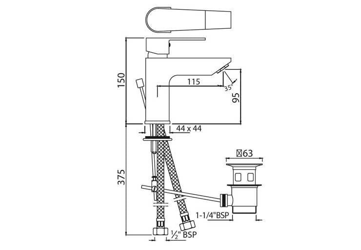 SINGLE LEVER EXTENDED BASIN MIXER WITH POPUP WASTE